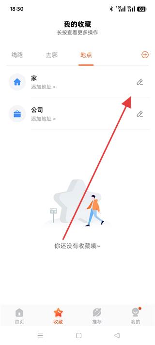 3、進入我的收藏板塊可點擊編輯按鈕,對家、公司等收藏地點進行地址添加或修改,方便快速選擇常用地點。