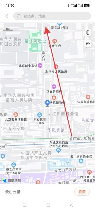 4、可查看地點的具體位置,如正義路1號院的地圖信息,了解周邊的地標建筑和交通情況,也可點擊收藏按鈕,將該地點添加到收藏中,方便后續(xù)查詢。