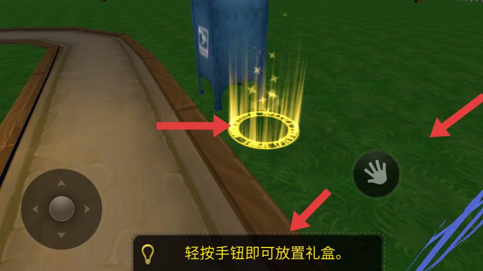 2、發(fā)現(xiàn)禮盒后,點(diǎn)擊手上的按鈕,收集禮盒,獲取游戲內(nèi)的道具或獎(jiǎng)勵(lì),為后續(xù)放置禮盒等操作做準(zhǔn)備。
