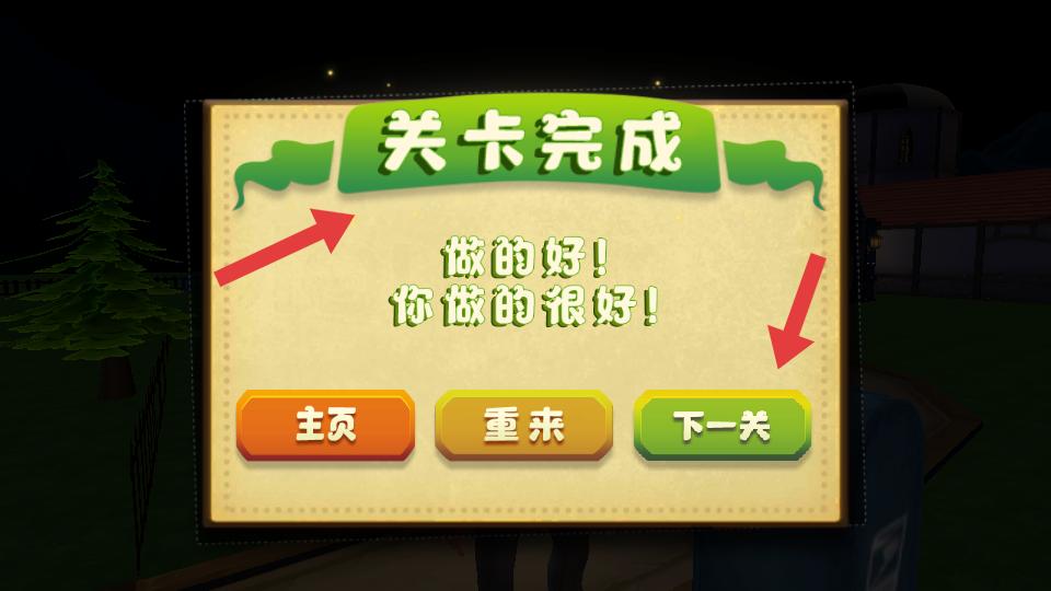 4、成功完成關(guān)卡后,界面顯示關(guān)卡完成,可選擇主頁(yè)返回主界面,重新挑戰(zhàn),或下一關(guān)繼續(xù)冒險(xiǎn)。
