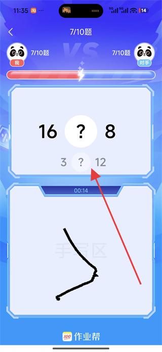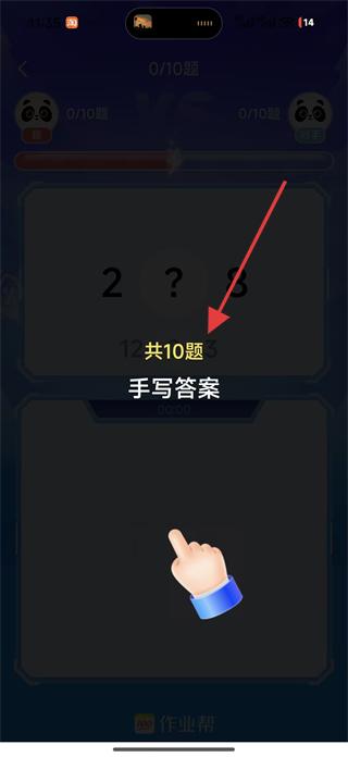 2、在口算PK賽答題界面,根據(jù)題目要求,如2和8的運算題,進行手寫答案作答,共需完成10題。