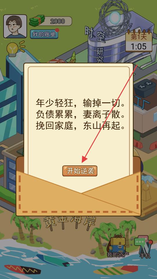 1、看到提示年少輕狂輸?shù)粢磺械葍?nèi)容,點(diǎn)擊開始逆襲按鈕,開啟逆襲人生的游戲進(jìn)程,為后續(xù)操作做準(zhǔn)備。