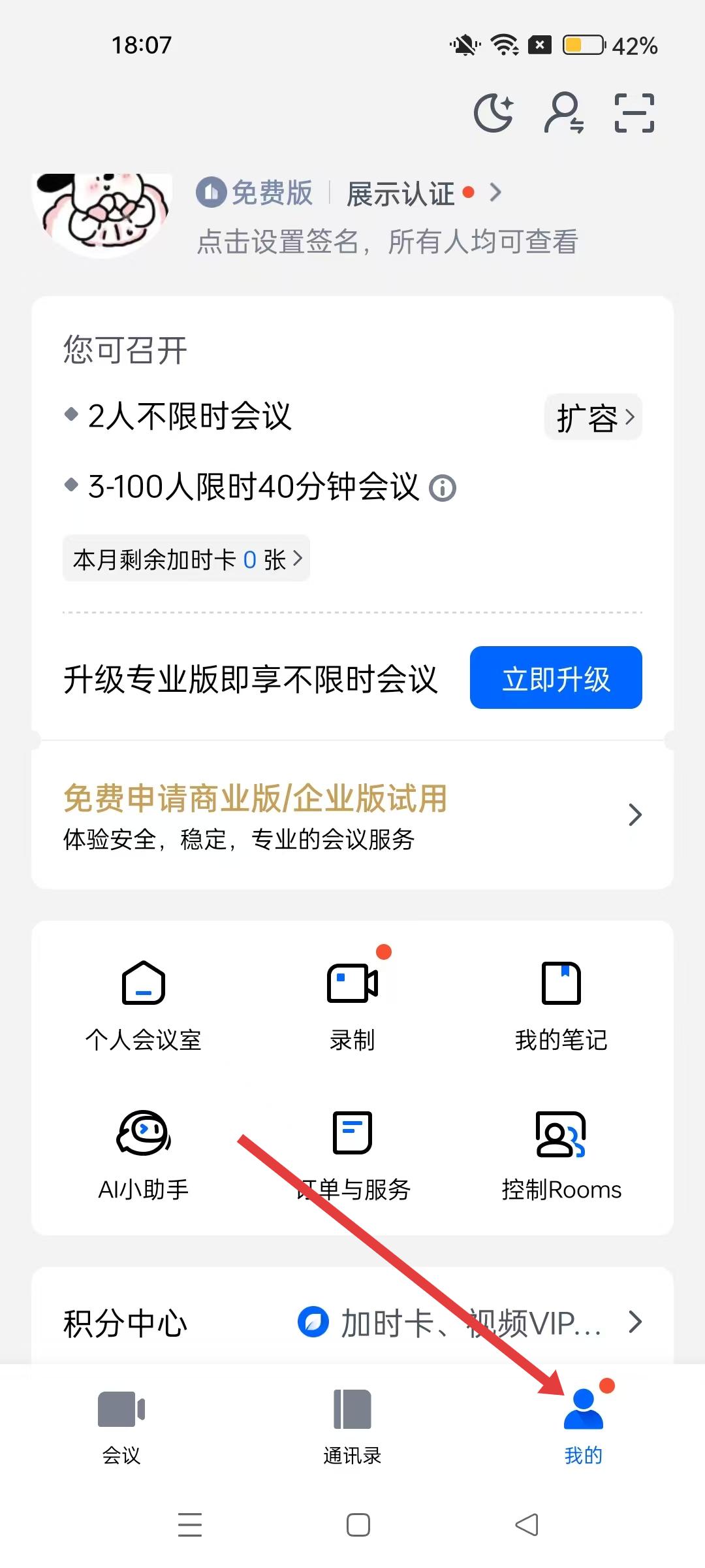 4、登錄成功后,進入騰訊會議個人中心界面,可查看可召開會議的類型、功能選項等,開始使用騰訊會議的各項服務。