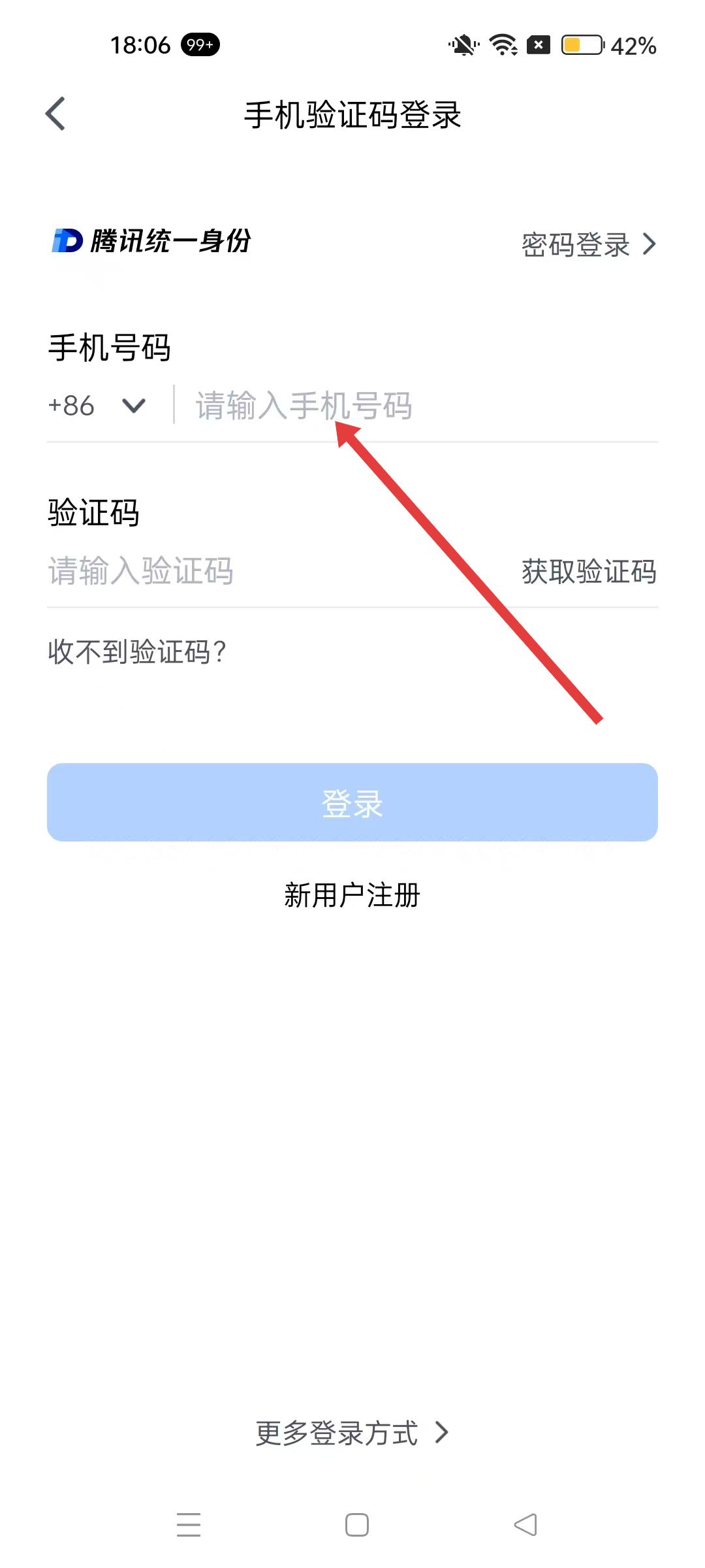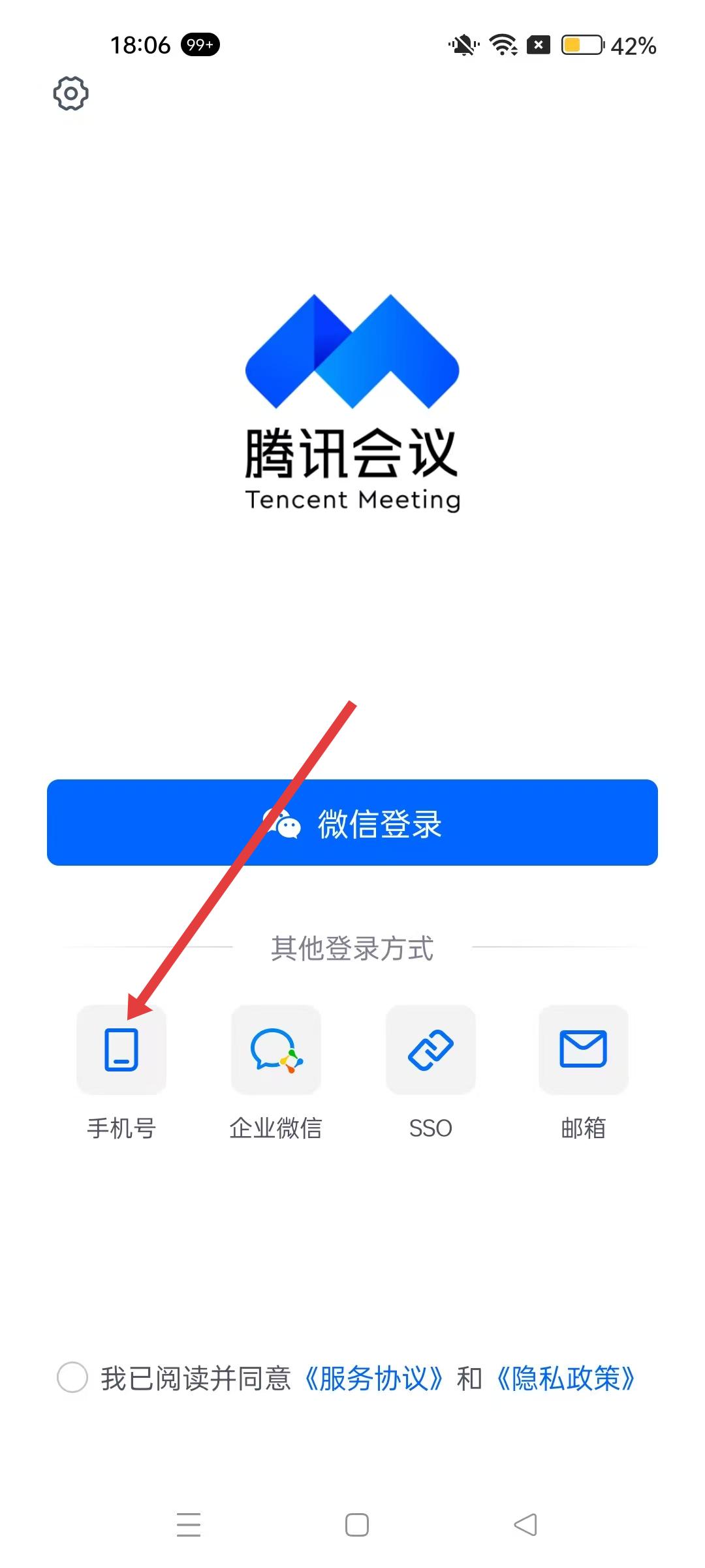 1、騰訊會議登錄界面,選擇手機號登錄方式,進入手機驗證碼登錄流程。