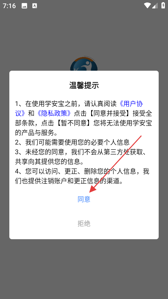 1、首次打開APP會(huì)彈出用戶協(xié)議及隱私政策界面,需仔細(xì)閱讀后點(diǎn)擊同意才能繼續(xù)使用APP,這一步是為了確保用戶了解并同意平臺(tái)使用個(gè)人信息的規(guī)則。