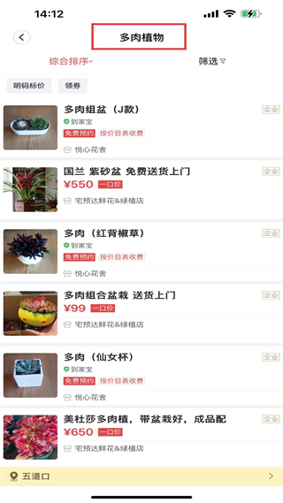 3、多肉植物板塊,展示多肉組盆、紅背椒草等,價99、650元,部分可免費預(yù)約、按價目表收費。