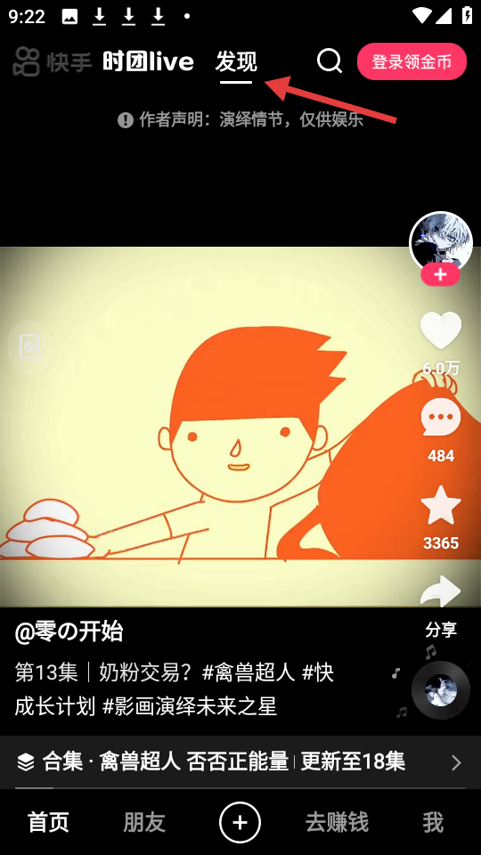 3、該圖呈現(xiàn)快手極速版發(fā)現(xiàn)頁(yè),展示了零開(kāi)始的短視頻,附帶標(biāo)題、話題標(biāo)簽及合集更新情況等信息。