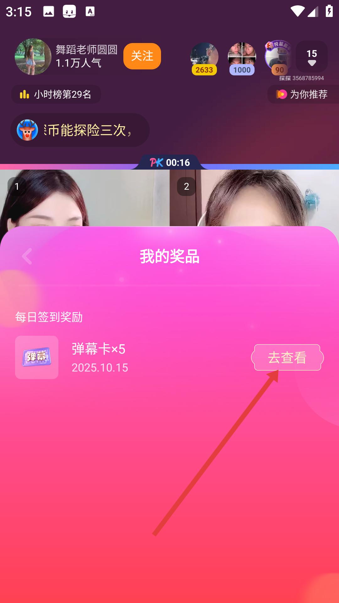 4、進(jìn)入獎(jiǎng)勵(lì)詳情頁面,看到獲得的彈幕卡5個(gè)獎(jiǎng)勵(lì),點(diǎn)擊去查看按鈕,進(jìn)一步查看獎(jiǎng)勵(lì)的具體情況。