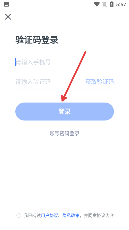 1、火星搜題的驗(yàn)證碼登錄界面在此輸入手機(jī)號(hào)、獲取并填入驗(yàn)證碼,勾選協(xié)議后點(diǎn)擊登錄即可進(jìn)入應(yīng)用。