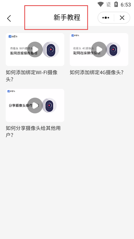 1、打開有看頭進入新手教程頁面,這里有如何添加綁定WIFi攝像頭等視頻教程,點擊對應(yīng)教程觀看視頻,學(xué)習(xí)攝像頭基礎(chǔ)操作方法幫你快速上手。