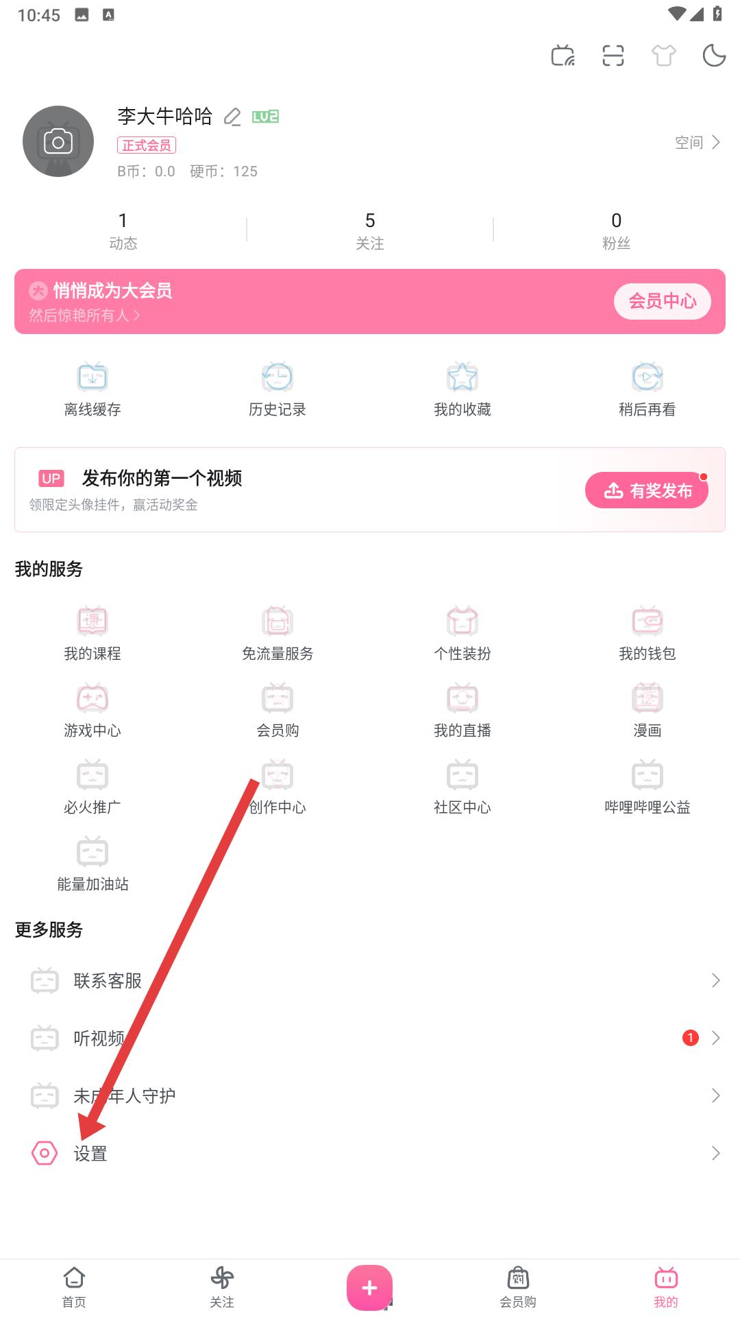 2、個(gè)人頁面中,找到設(shè)置選項(xiàng),點(diǎn)擊進(jìn)入設(shè)置界面,準(zhǔn)備退出登錄。