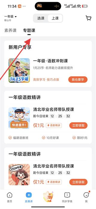 1、進入軟件直播課頁面,找到專題課選項并點擊,進入專題課的課程推薦界面。