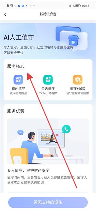 3、進(jìn)入服務(wù)詳情頁面查看AI人工值守服務(wù)的服務(wù)核心,如夜間值守、全天值守等,了解服務(wù)的主要功能。