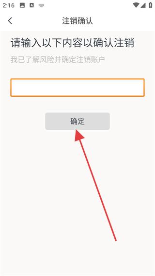 4、在注銷確認頁面輸入指定內(nèi)容,確認已了解風(fēng)險并確定注銷賬戶,點擊確定完成賬號注銷流程。