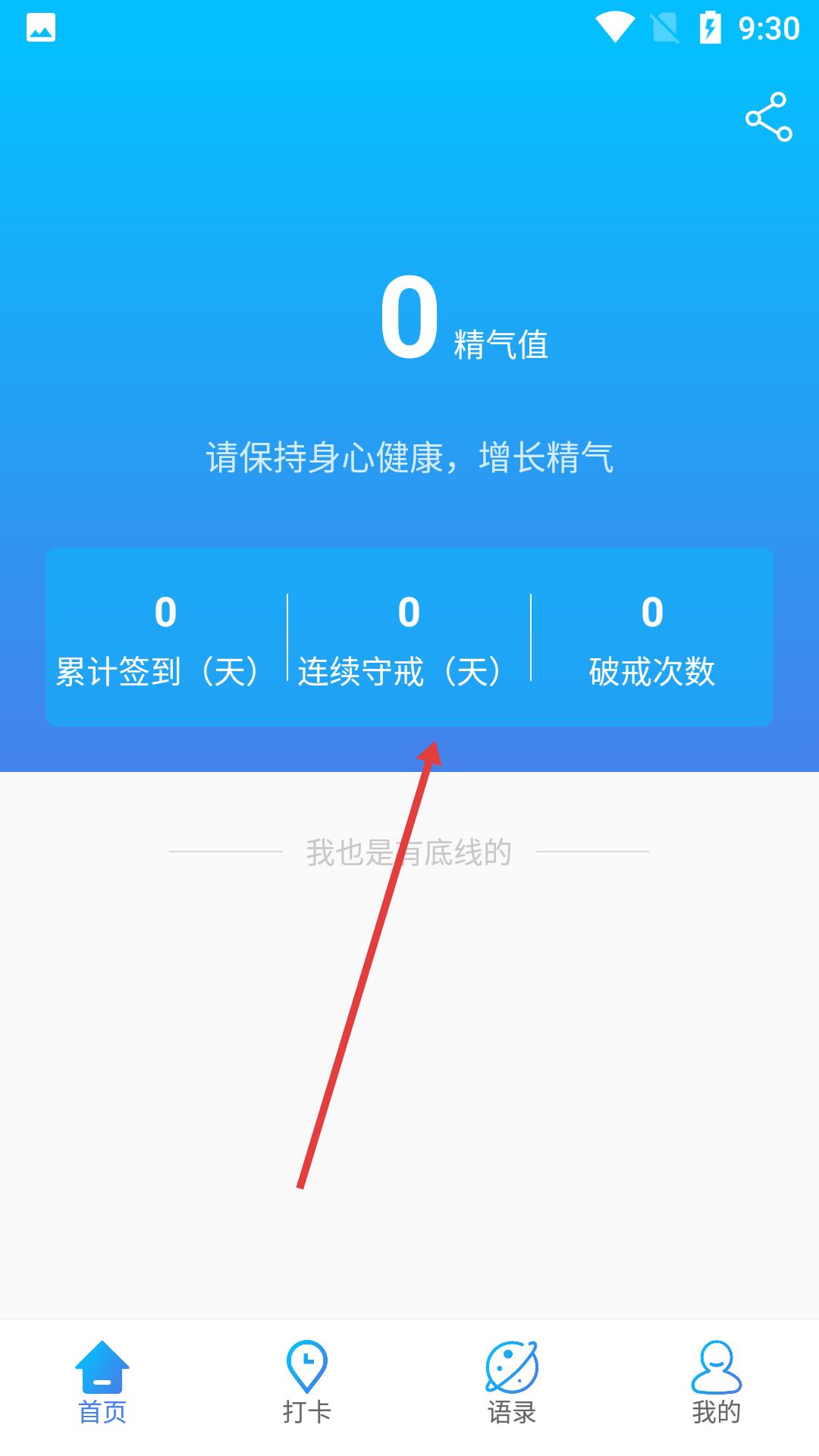 1、點擊底部導航欄的打卡按鈕,就能進入打卡頁面,在這里可以查看自己的累計簽到天數(shù)、連續(xù)守戒天數(shù)和破戒次數(shù)等信息。
