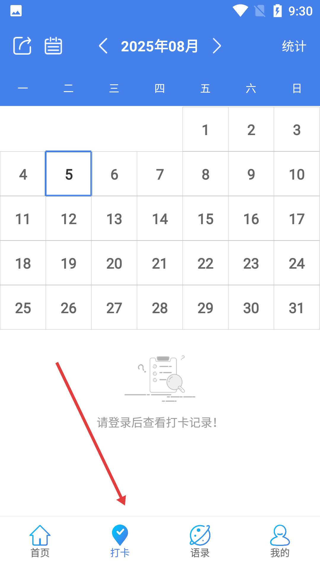 2、在打卡頁面中你可以清晰看到當月的日歷,還能查看自己的打卡記錄,但要注意需登錄后才能查看完整的打卡情況。