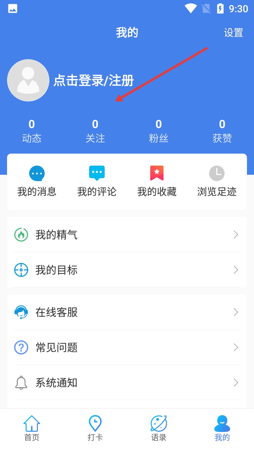 3、點擊我的按鈕,你可以進行登錄或注冊操作,還能查看自己的動態(tài)、關(guān)注、粉絲和獲贊等數(shù)據(jù),以及消息、評論等個人相關(guān)內(nèi)容。