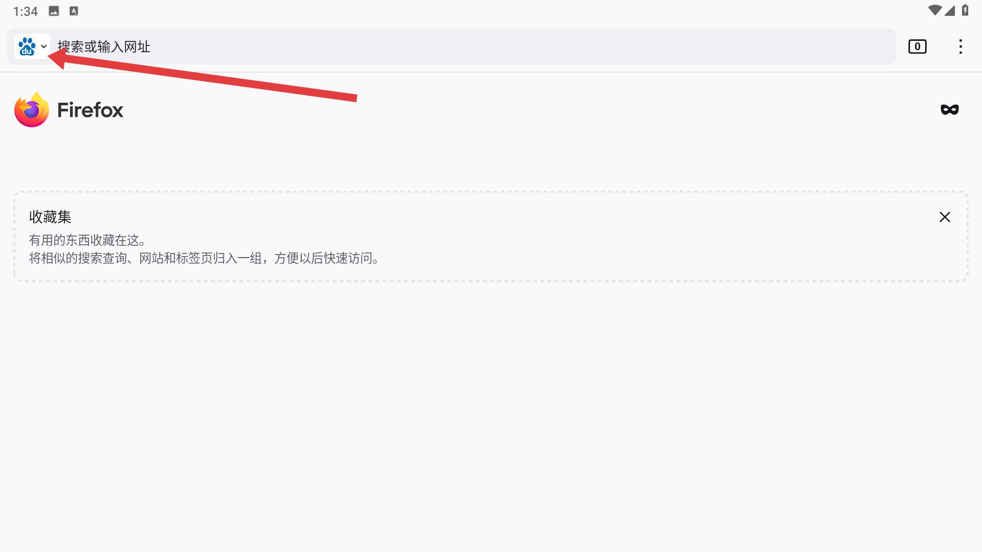 1、打開 Firefox 瀏覽器,點擊搜索欄左側(cè)的圖標(biāo),進入搜索相關(guān)設(shè)置界面。