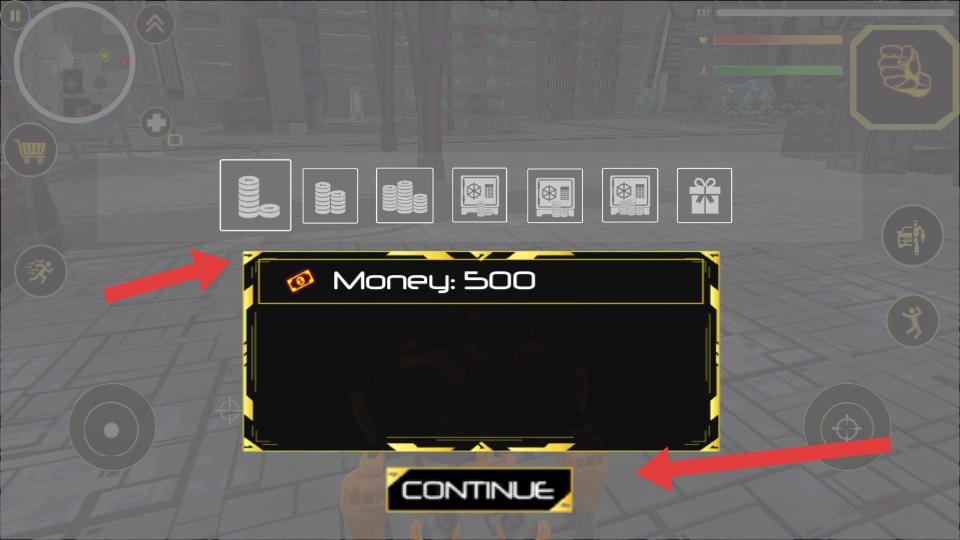 2、游戲中會(huì)獲得金錢獎(jiǎng)勵(lì),界面會(huì)顯示Money500,點(diǎn)擊CONTINUE,可繼續(xù)游戲,去探索更多內(nèi)容。