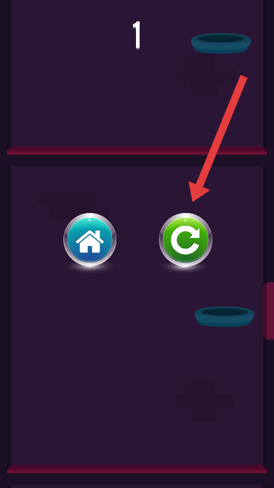 4、若想重新挑戰(zhàn)當前關卡,可點擊綠色帶循環(huán)箭頭的按鈕,重新開始游戲,也可點擊藍色房子按鈕返回主頁。