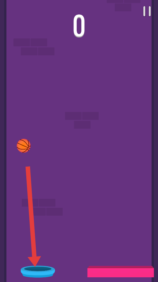 2、在游戲過程,操控籃球,讓其落入下方藍色的容器中,此時分數(shù)為0,成功落入可開始積累分數(shù)。