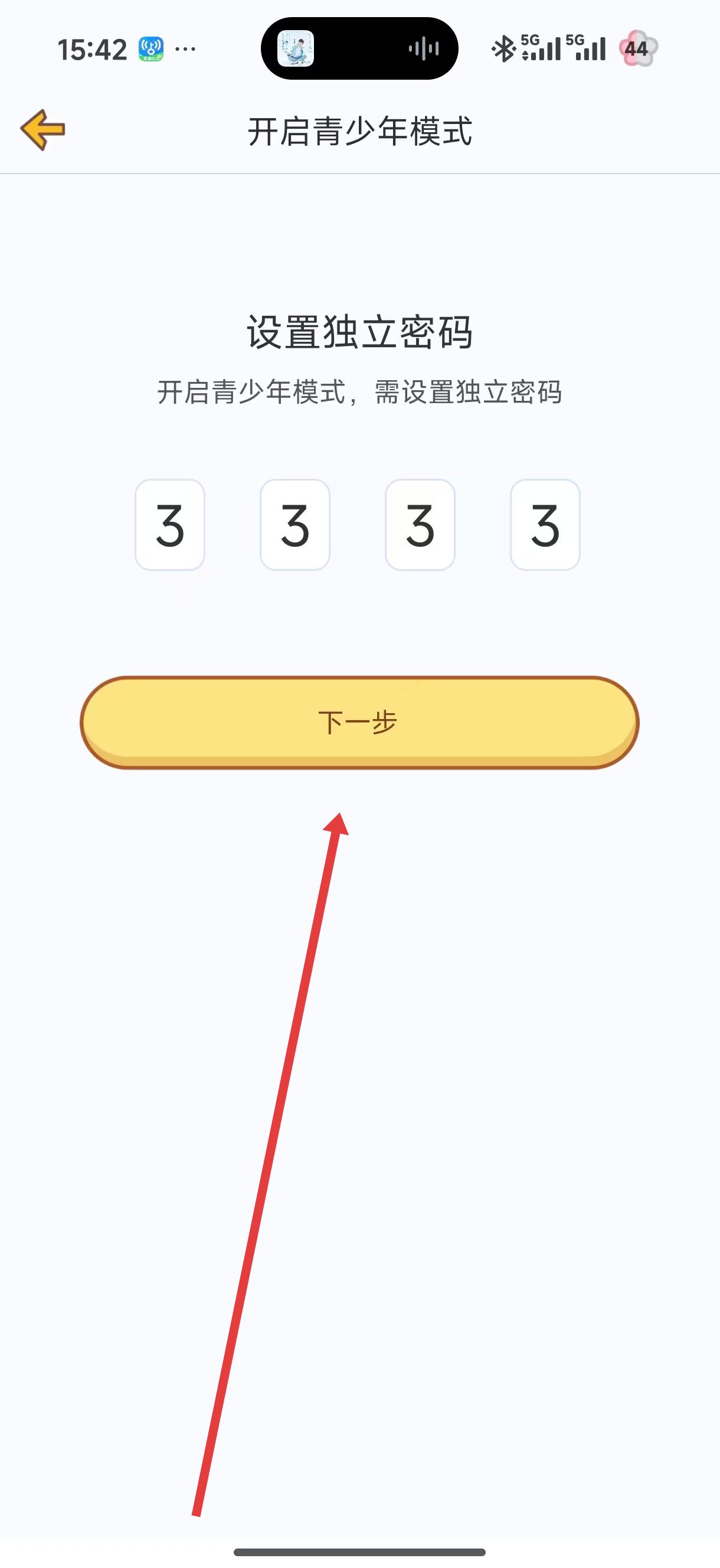 2、在設(shè)置獨(dú)立密碼界面輸入想要設(shè)置的密碼,完成輸入后,點(diǎn)擊下一步按鈕,進(jìn)入確認(rèn)密碼界面。