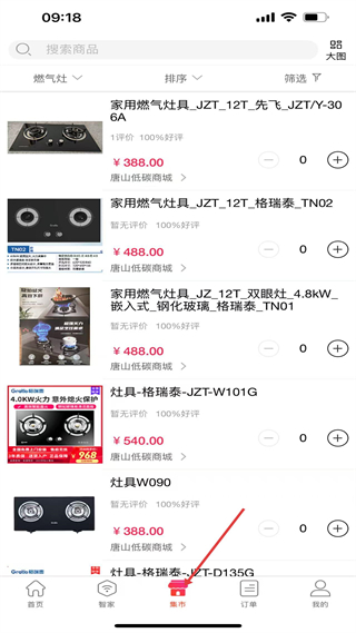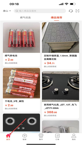 1、首頁(yè)唐山有燃?xì)鈨?yōu)選、爆品推薦板塊,展示燃?xì)獗黼姵亍⒓矣萌細(xì)庠畹壬唐?,可選購(gòu)燃?xì)庀嚓P(guān)用品。