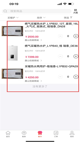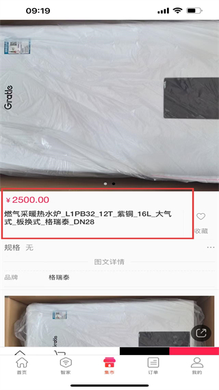 3、集市頁(yè)采暖爐板塊,展示格瑞泰品牌燃?xì)獠膳療崴疇t,價(jià)格2500、7299元不等,可查看詳情選購(gòu)。