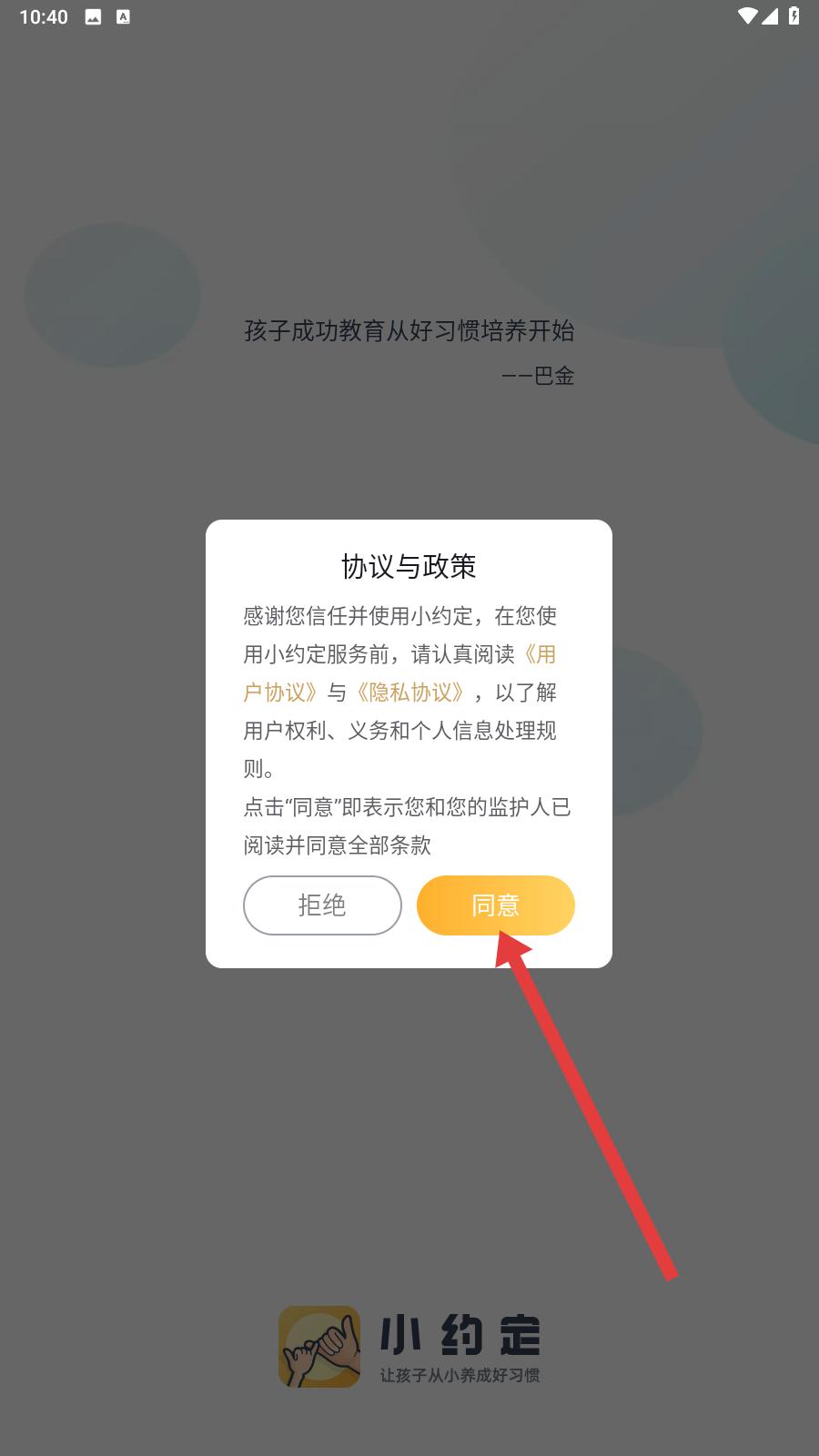 1、打開軟件,在彈出的協(xié)議與政策界面,仔細閱讀相關(guān)內(nèi)容,點擊界面右下的同意按鈕,以繼續(xù)使用該應用。