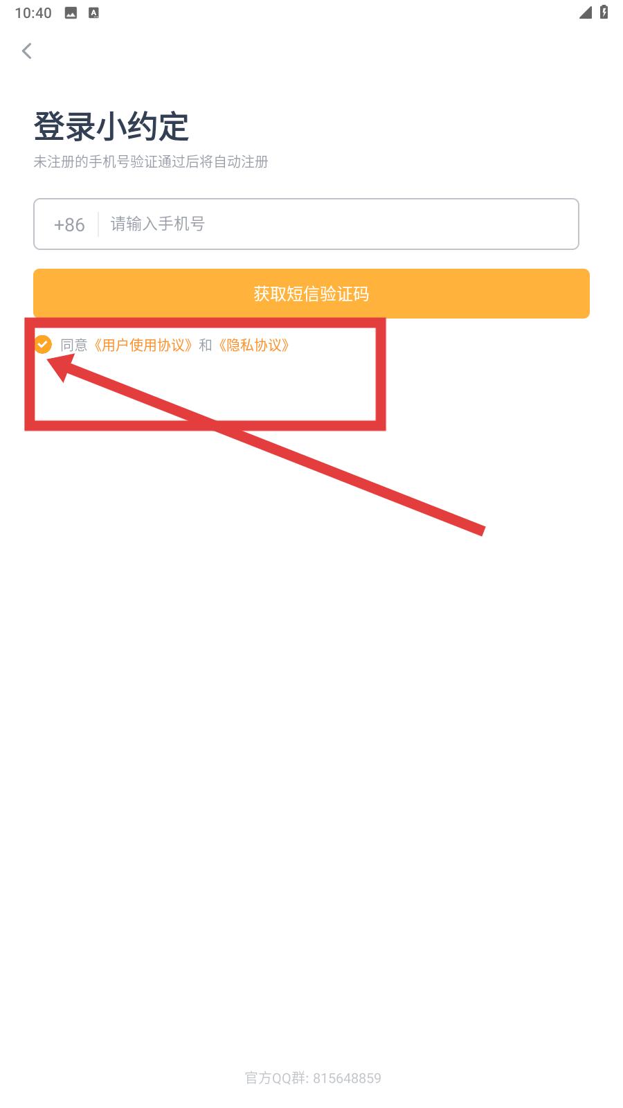 3、記得勾選我已閱讀并同意遵守隱私協(xié)議選項,接著點擊獲取驗證碼操作,進行手機號登錄。