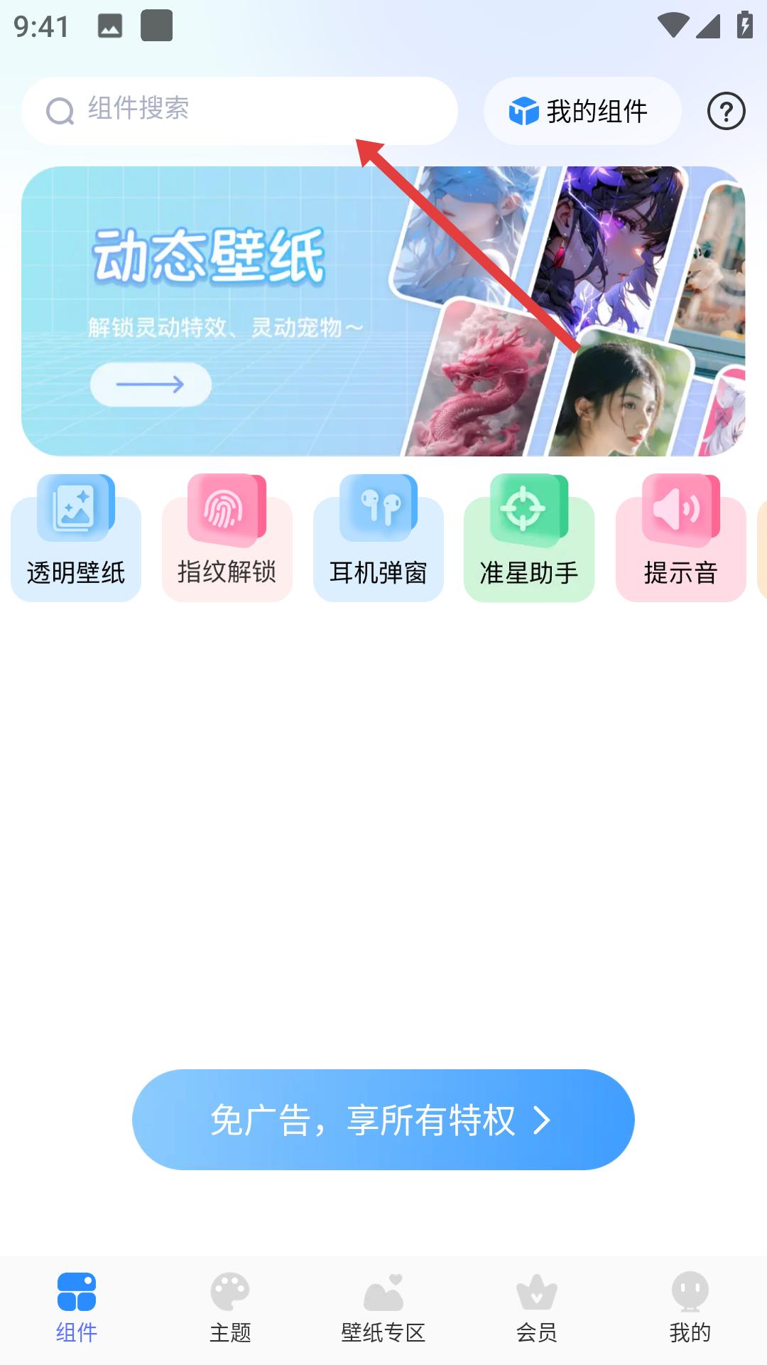 1、在軟件組件界面,點(diǎn)擊頂部組件搜索欄,可輸入關(guān)鍵詞搜索想要的主題、組件。