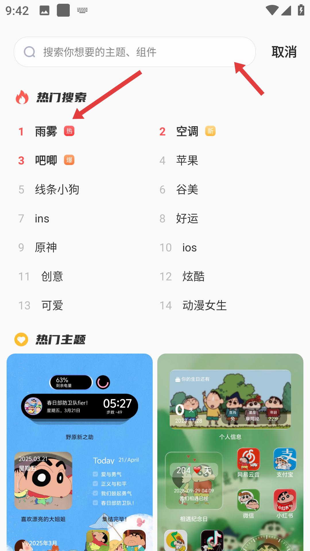 2、進(jìn)入搜索界面后,可在熱門搜索中選擇熱門關(guān)鍵詞,如雨霧,也可在搜索欄輸入自定義關(guān)鍵詞進(jìn)行搜索。