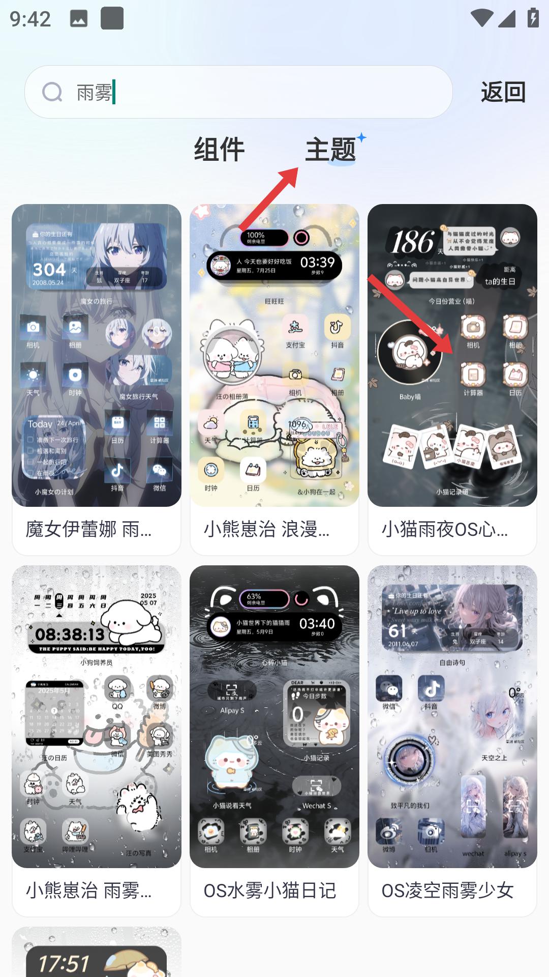 3、搜索雨霧后,切換到主題分類,可瀏覽多種雨霧風(fēng)格的主題,挑選喜歡的主題點(diǎn)擊進(jìn)入詳情頁。