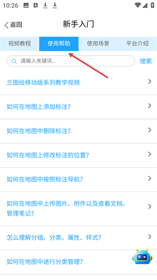 3、使用幫助板塊有搜索功能,可查詢地圖標(biāo)注添加、刪除、修改及導(dǎo)航、文件管理等操作幫助,解決使用疑惑。