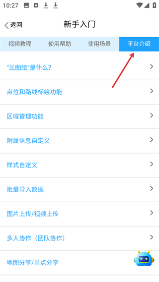4、平臺介紹板塊可了解蘭圖繪定義、點(diǎn)位路線標(biāo)繪、區(qū)域管理、附屬信息自定義等功能,助力用戶熟悉平臺核心能力。