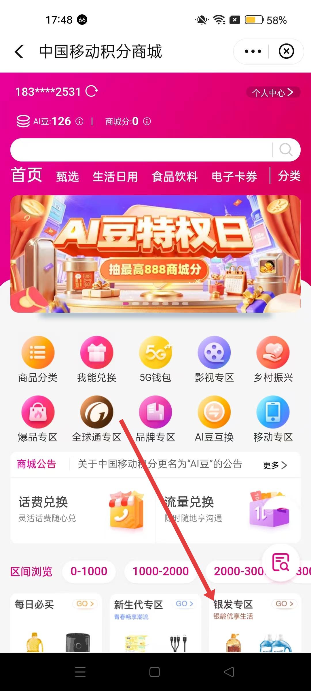3、積分商城中,選擇銀發(fā)專區(qū),瀏覽該專區(qū)內(nèi)的商品,找到想要兌換的物品。