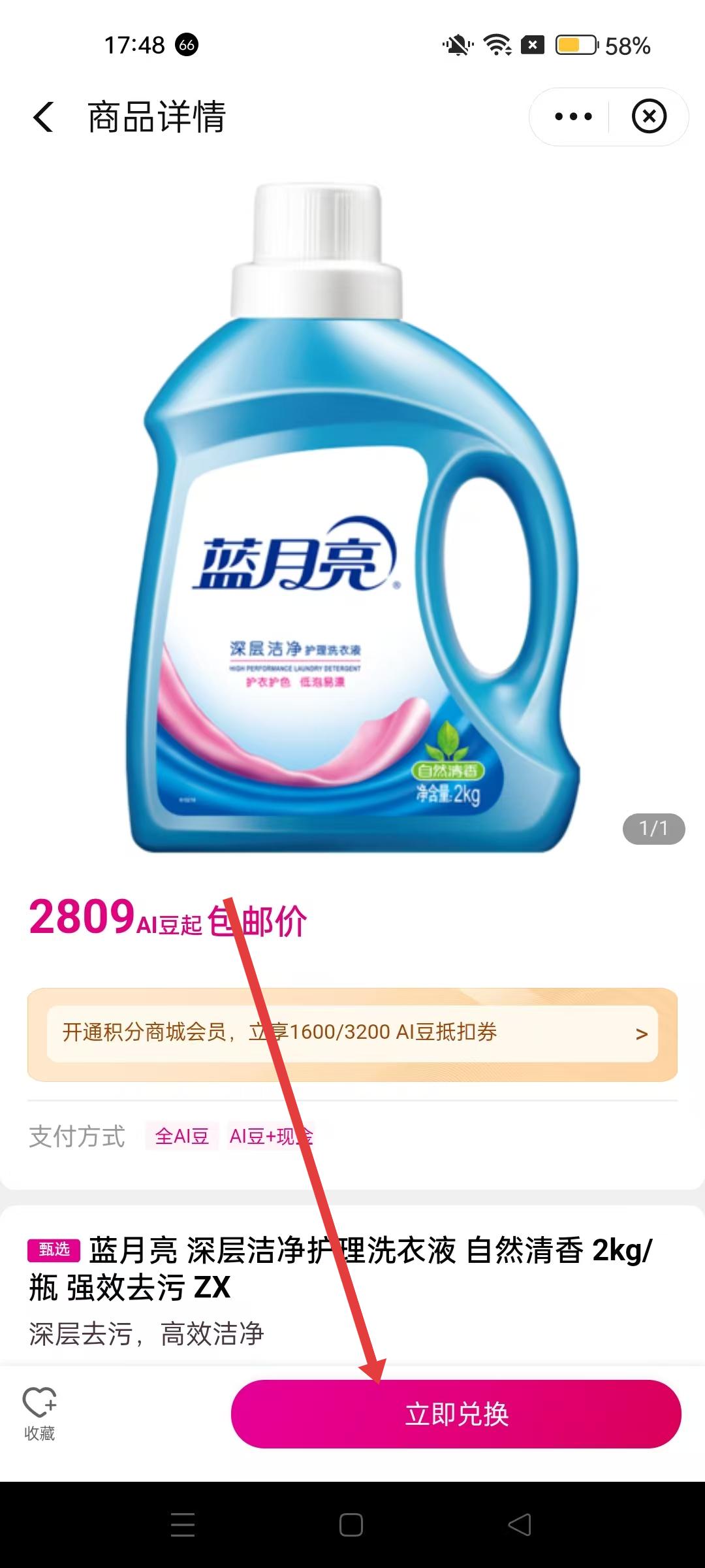 4、進(jìn)入商品詳情頁,點擊立即兌換,即可用AI豆兌換相應(yīng)商品,享受積分兌換福利。