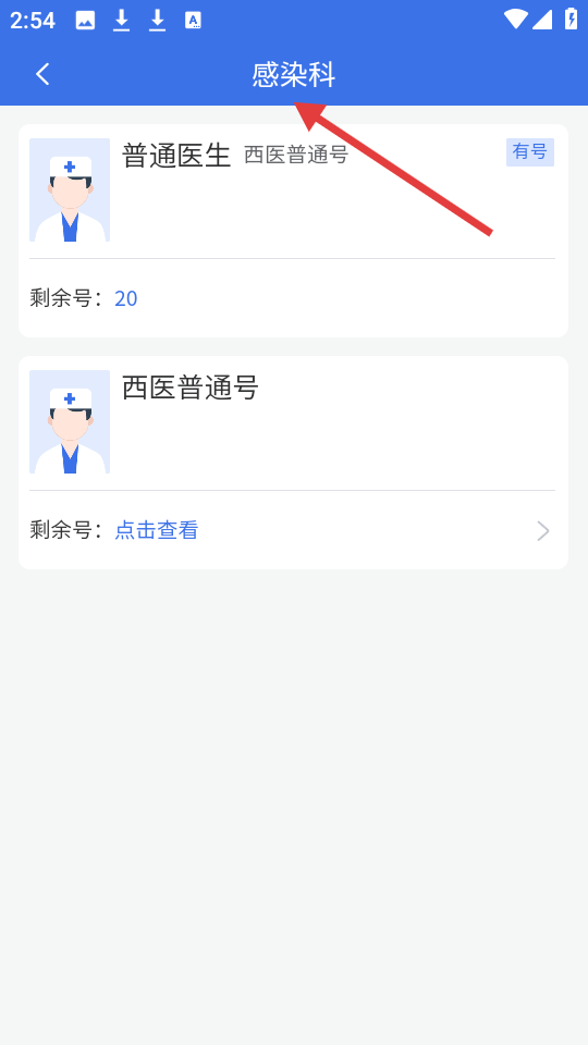 4、感染科掛號(hào)頁(yè)展示普通醫(yī)生等號(hào)源,標(biāo)明有無(wú)號(hào)及剩余號(hào)數(shù),部分需點(diǎn)擊查看,方便患者知曉號(hào)源狀況進(jìn)行掛號(hào)。