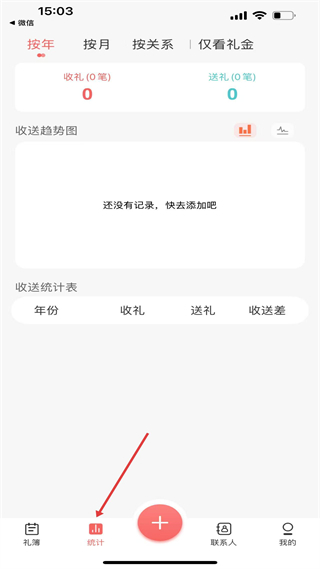 2、統(tǒng)計(jì)板塊可按年、月、關(guān)系等維度統(tǒng)計(jì)收送禮數(shù)據(jù),展示收送趨勢(shì)圖和統(tǒng)計(jì)表,便于用戶掌握禮尚往來(lái)情況數(shù)據(jù)清晰直觀。