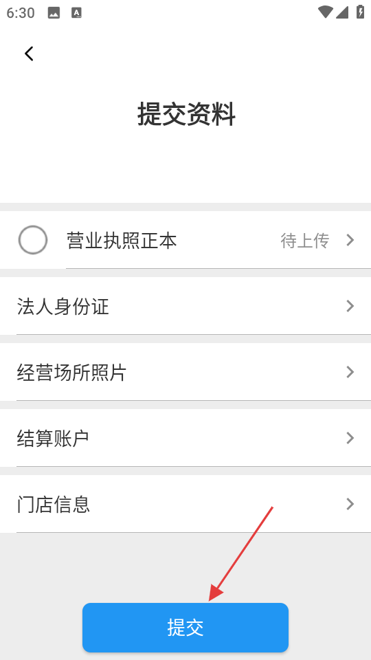 3、點擊去上傳資料后進入提交資料頁面,需要準備并上傳營業(yè)執(zhí)照正本等資料,按照要求依次填寫和上傳相關(guān)內(nèi)容,點擊底部的提交按鈕,即可開通微信支付收款商戶。