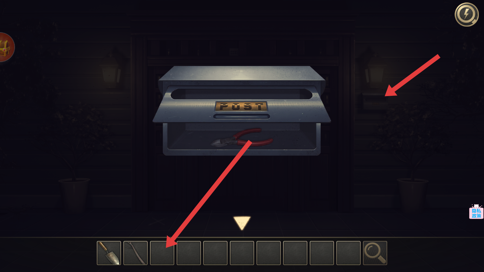 3、接著查看郵箱,從中獲取鉗子,把鉗子添加到道具欄,進一步充實道具儲備。
