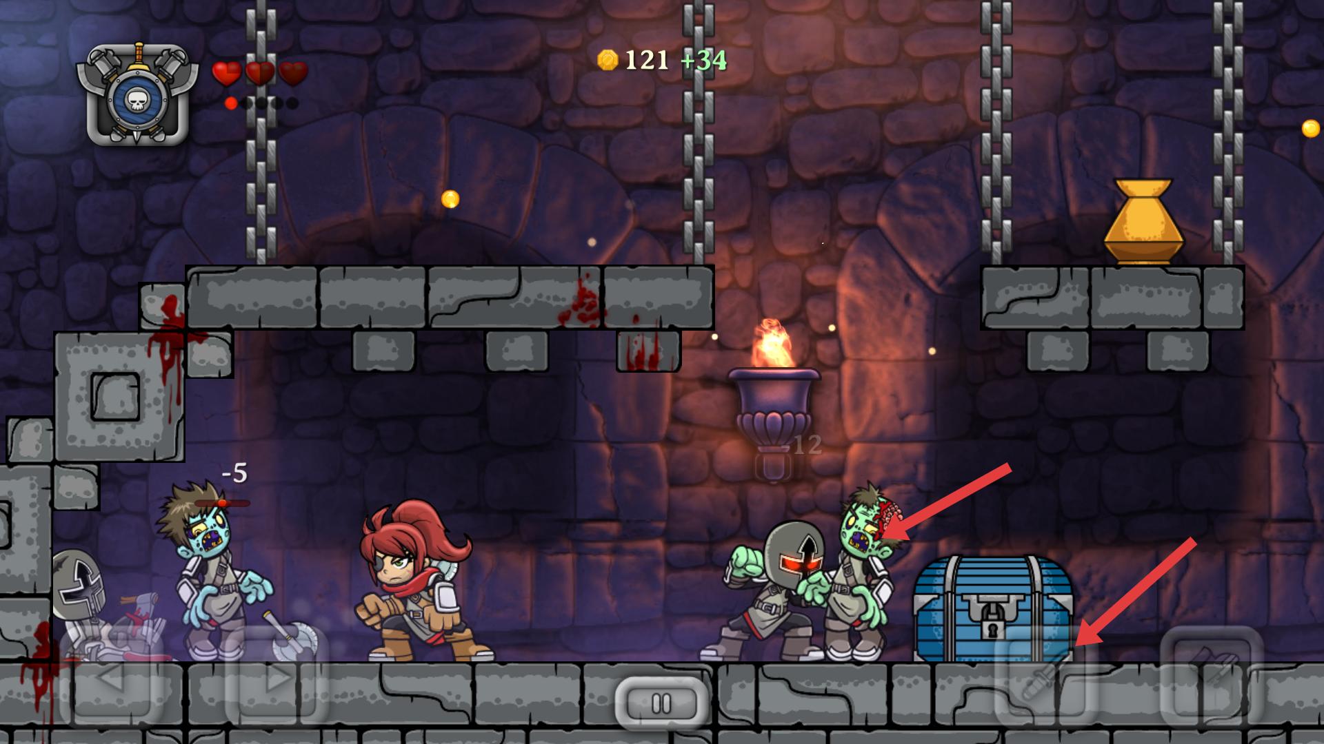 2、使用左側(cè)方向按鍵操控角色移動(dòng),在地牢場(chǎng)景中探索,收集金幣等物品,同時(shí)注意躲避可能出現(xiàn)的危險(xiǎn)。