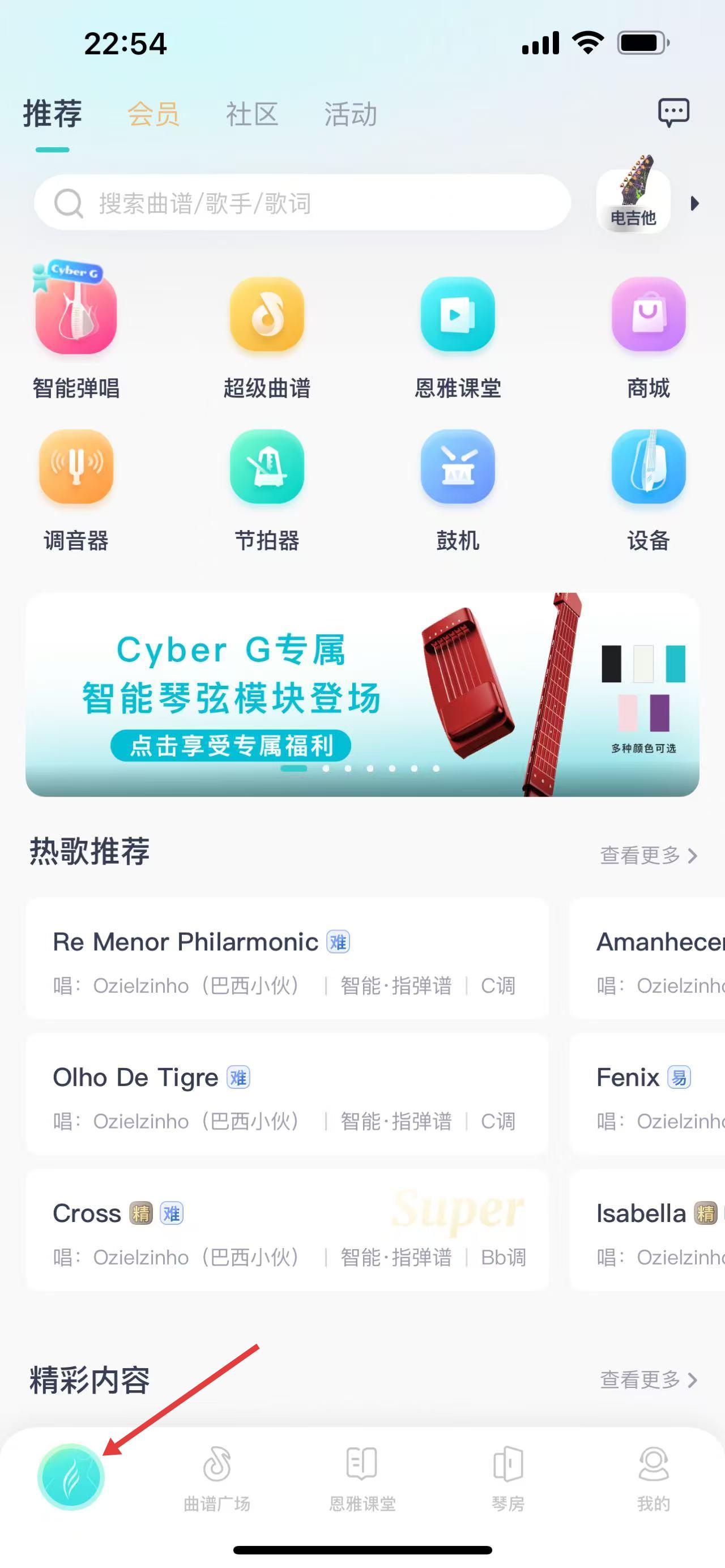 1、發(fā)現(xiàn)板塊有智能彈唱、超級(jí)曲譜等功能,熱歌推薦涵蓋巴西小伙多首作品,為吉他愛好者提供豐富曲譜與實(shí)用功能。