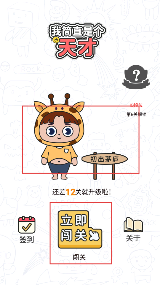 1、點(diǎn)擊立即闖關(guān),進(jìn)入游戲關(guān)卡,初始IQ段位為初出茅廬,需要通過(guò)闖關(guān)提升段位,開(kāi)啟腦力挑戰(zhàn)。