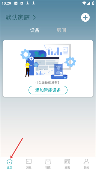 1、主頁板塊顯示默認家庭設(shè)備情況,可添加智能設(shè)備,同時設(shè)有消息、精選、資訊等功能入口,滿足智能設(shè)備管理與資訊獲取的雙重需求。