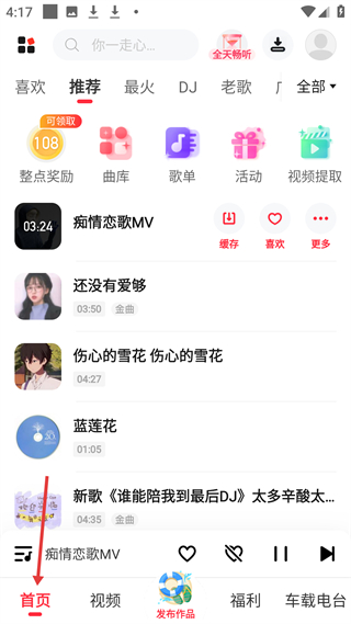 2、視頻板塊展示錯(cuò)過(guò)了緣分錯(cuò)過(guò)你DJ等音樂MV,支持點(diǎn)贊、緩存等互動(dòng),豐富音樂欣賞形式,帶來(lái)視聽雙重體驗(yàn)。