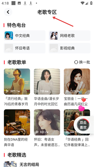 4、老歌專區(qū)含特色電臺(tái)、老歌歌單,如流行經(jīng)典致70后青春歲月歌單,為老歌愛好者提供豐富選擇,喚醒懷舊音樂記憶。