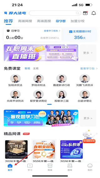 1、首頁有免費課堂,羅翔講刑法等名師課程可選,還有精品網(wǎng)課如2026主客一體班,助力法考學習規(guī)劃與課程選擇。