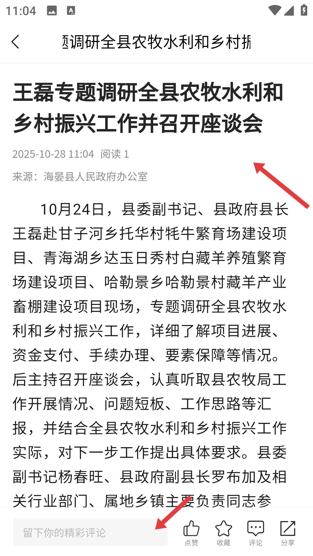 2、進(jìn)入新聞詳情頁面,可閱讀新聞內(nèi)容,還能進(jìn)行點(diǎn)贊,收藏,評論,分享等操作。