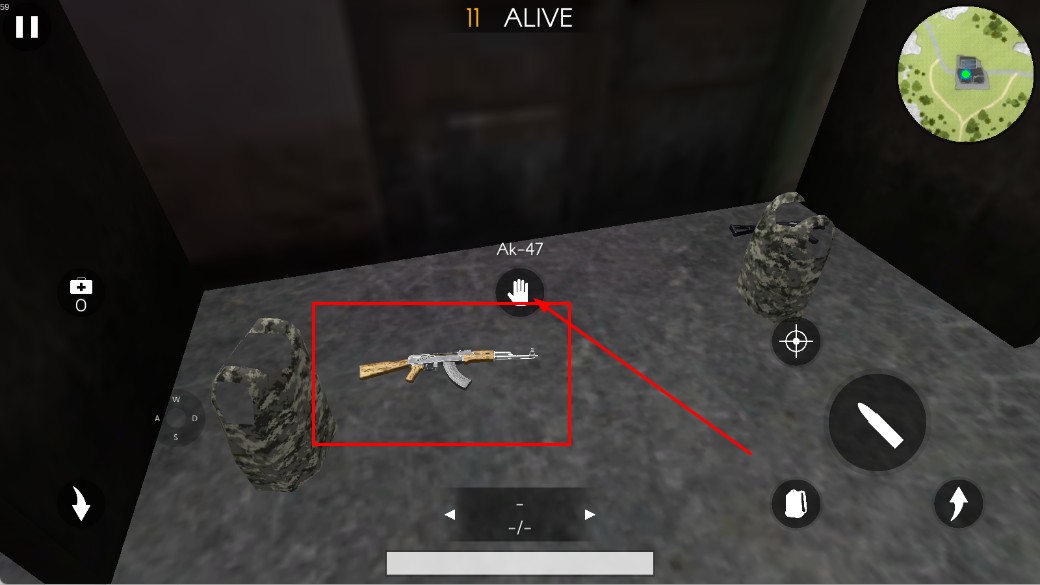 2、發(fā)現(xiàn)AK47步槍等武器時,點擊拾取按鈕,將武器收入囊中,提升自身戰(zhàn)斗能力,以便應(yīng)對敵人。